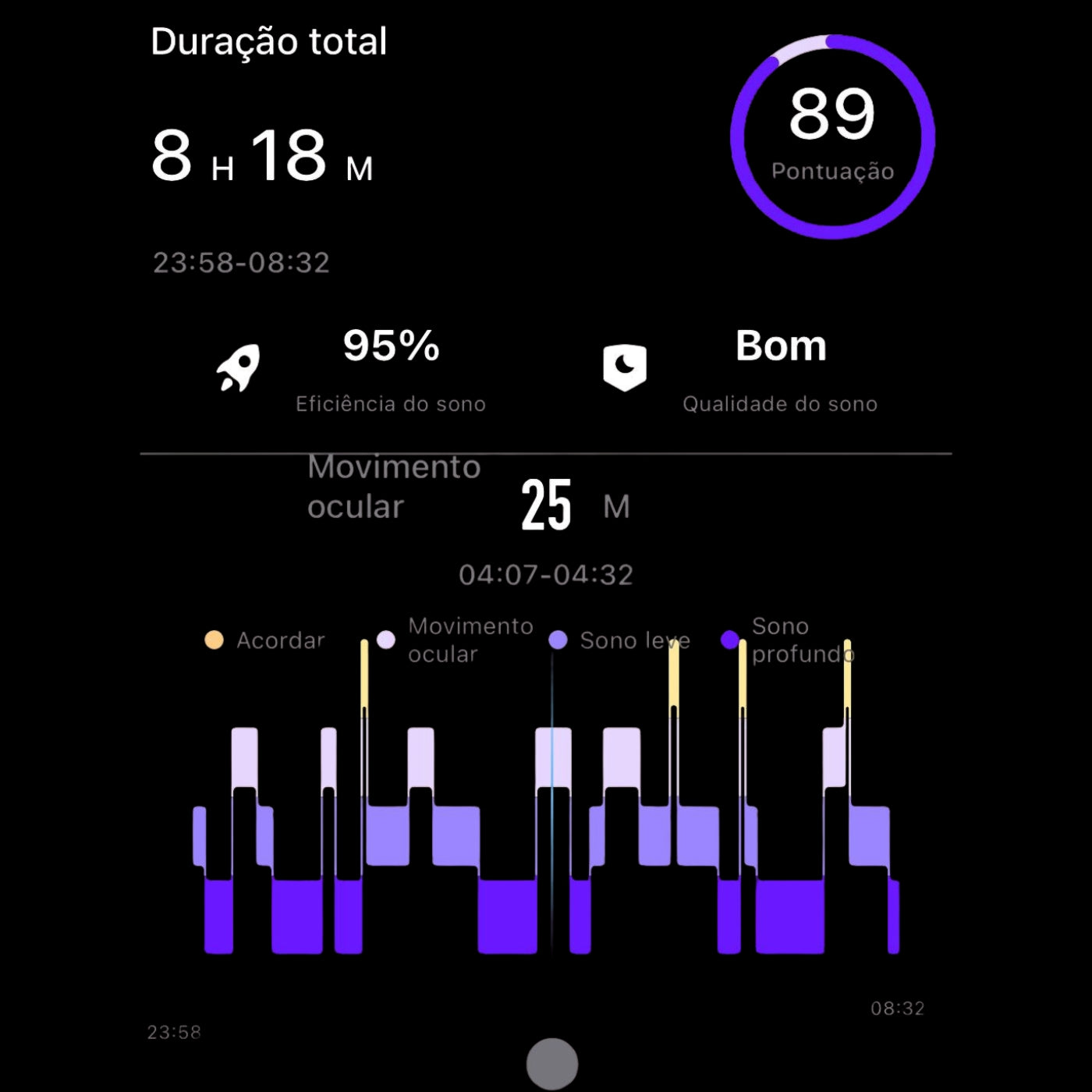 Mede de forma precisa seu sono, variabilidade da frequência cardíaca, nível de estresse, movimentos e temperatura, entregando insights objetivos para melhorar sua saúde, recuperação e performance todos os dias.