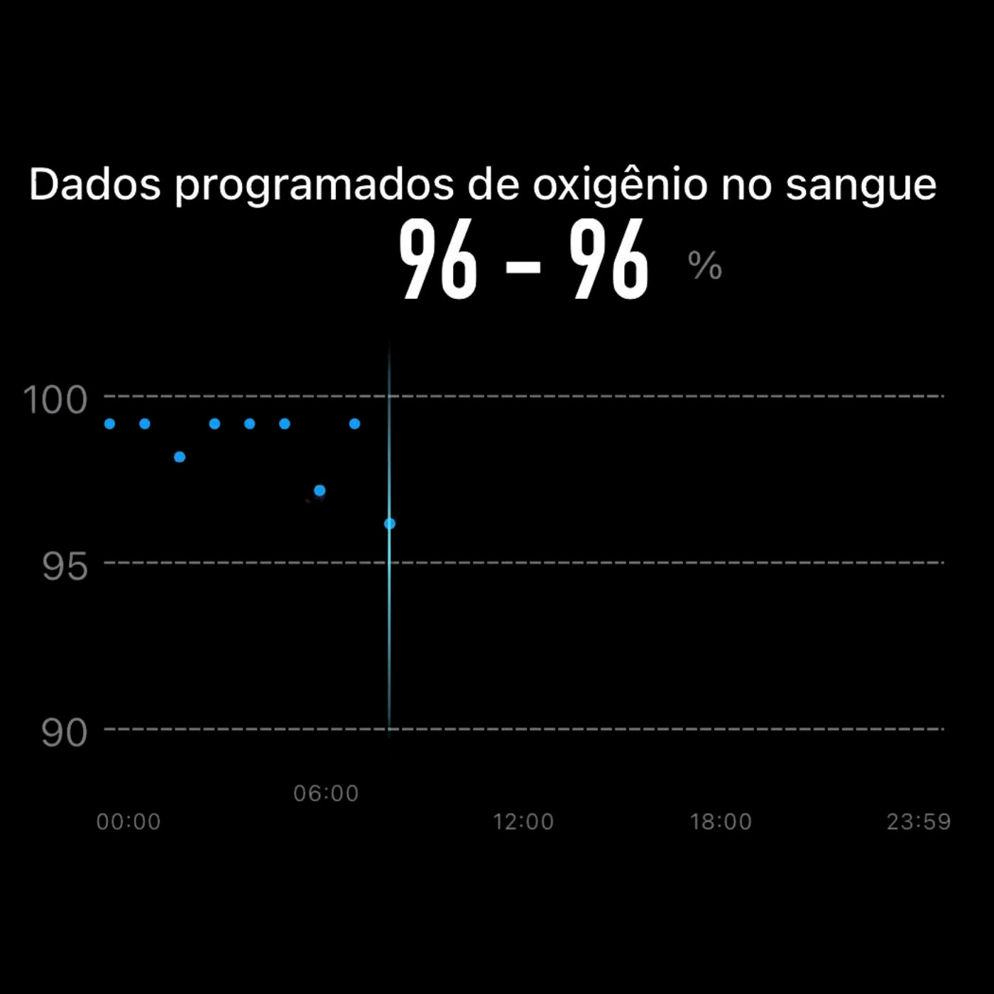 Medição contínua da saturação de oxigênio no sangue (SpO₂), ajudando a identificar alterações importantes na sua saúde.