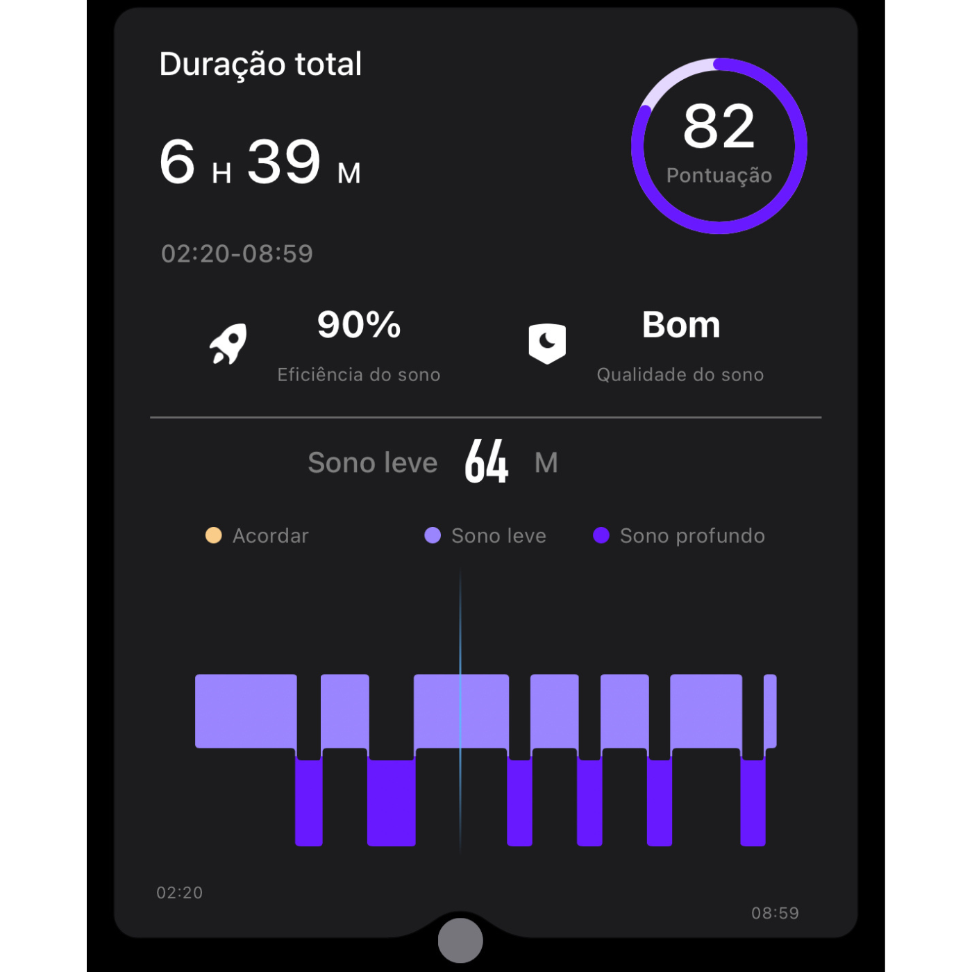 Mede com precisão seu sono, variabilidade da frequência cardíaca, movimentos e níveis de estresse, fornecendo insights valiosos para melhorar sua saúde e performance diariamente.